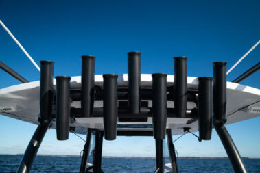 Inside the spacious center console cabin, you’ll find generous shade and airflow, along with premium amenities designed for extended trips. Features include a stand-up head with shower, a comfortable berth, and the option for air conditioning—providing the same level of comfort typically found on much larger vessels.