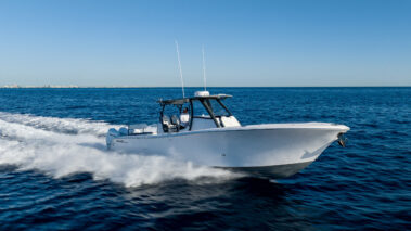 Measuring 36’6″ with a 10’6″ beam, this center console offers more size and capability than most boats in its class. Designed with a deep-V hull, pronounced bow flare, and a high-performance stepped bottom, it delivers superior speed, range, and stability in offshore conditions.