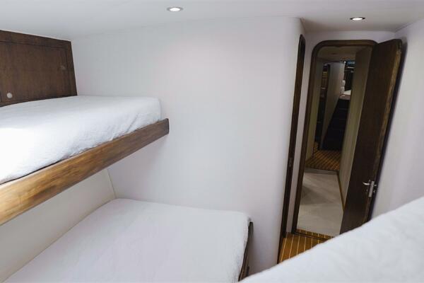 · Guest/Bunk Room: To starboard with oversized over-under bunks.