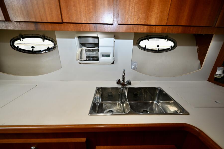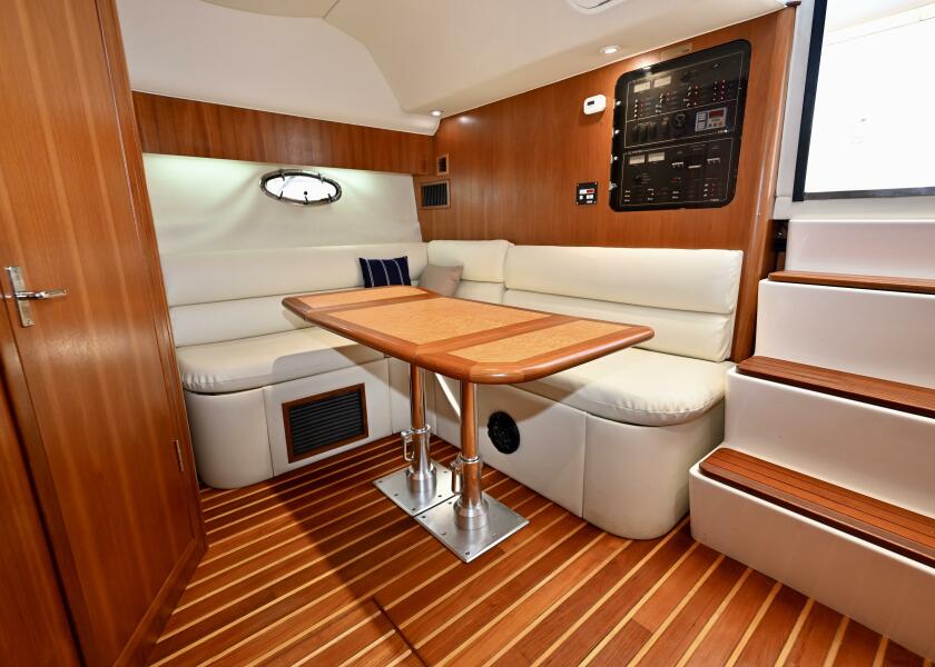 - Excellent storage for this size: under-berth drawers, hanging lockers in the forward cabin, settee storage in the salon, galley storage, and various trunk lockers.