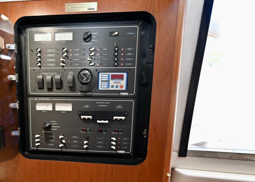 Overall, the engine room of Amejaie II reflects Tiara’s signature attention to detail and practical design philosophy — combining safety, functionality, and clean engineering in a space that’s easy to access and maintain, whether preparing for a weekend cruise or a longer offshore run.