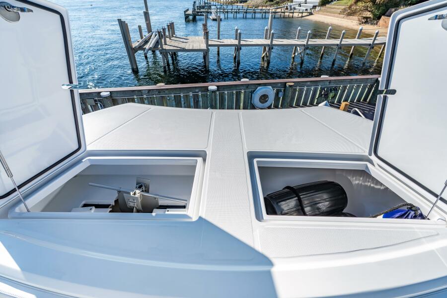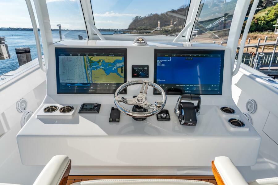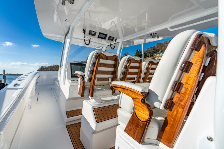 Following the success of Front Runner’s 37 Cat, the new 43’ model raises the bar for offshore performance and fishability. With a 12’4” beam, dual-row helm seating, large transom livewell, and two in-deck livewells, this platform was built for serious fishing and versatile family fun. Its stepped hull, lifting strakes, and flared bow deliver a smooth, dry ride with exceptional stability in any condition.