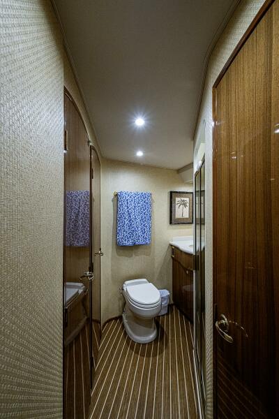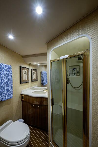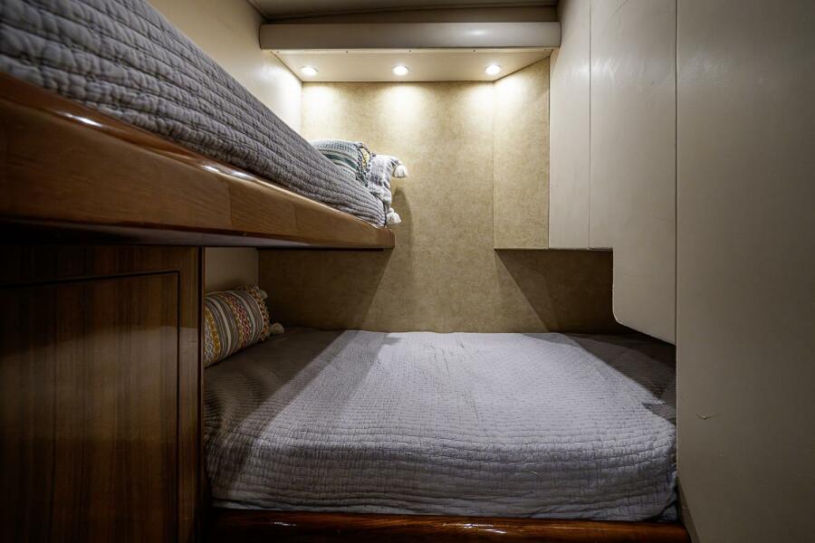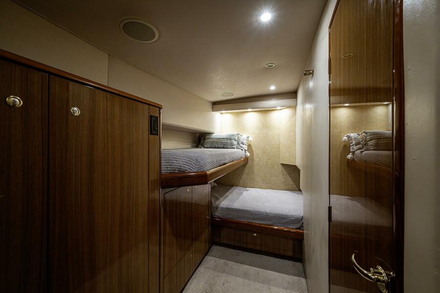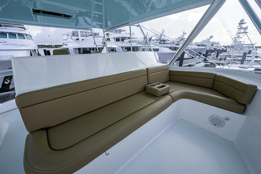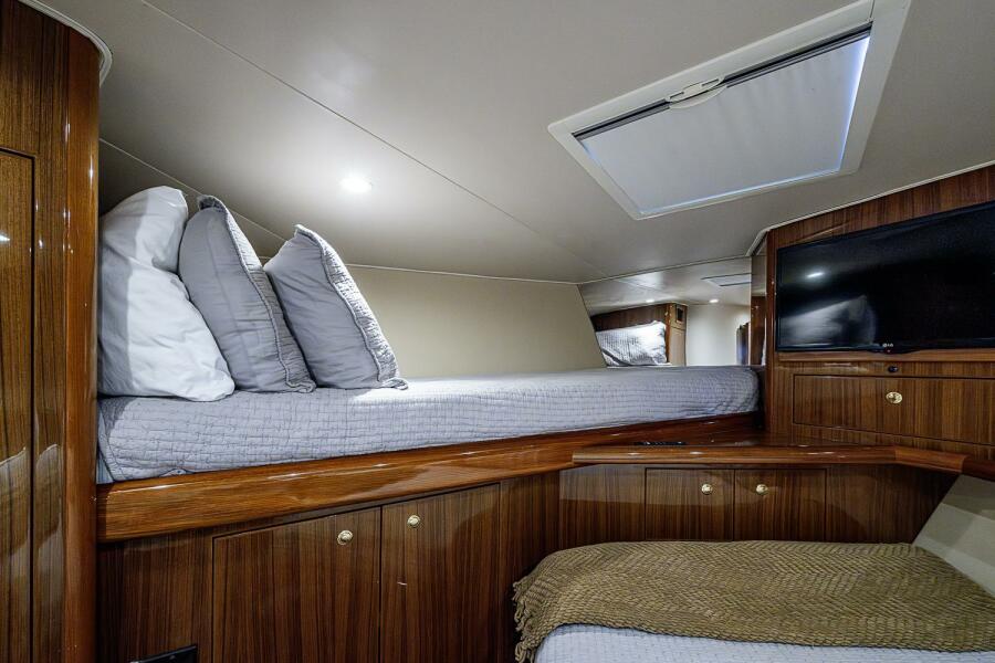 This 2006 56 Viking has a beautiful interior Granite, fabric and teak upgrades and accents are found throughout. The beauty of the 56 Viking, is that it has the speed, ride, and range of many of its modern-day siblings for a fraction of the price. With upgraded MAN CRM 1550’s the 56 will comfortably cruise at 32 plus knots and top out close to 40. The upgraded fuel capacity brings the total to 1700 gallons for extended range. Done Deal is an excellent example of a true tournament rigged 56 Viking with the preferred VIP forward stateroom Crossover layout. Some of the more notable options are, 2 Seakeeper 6 gyros, updated Garmin electronics package, Koden KDS6000 Sonar, extra fuel capacity, bow thruster, 3rd sub-zero unit in the galley island, 1200 GPD Watermaker, Eskimo ice chipper, Release Marine Helm and Fighting chair, plus so much more.