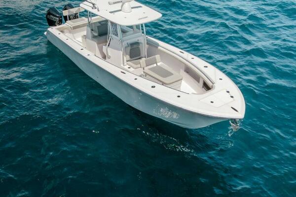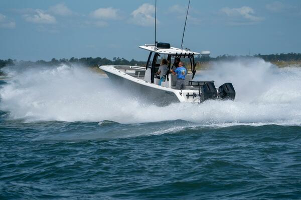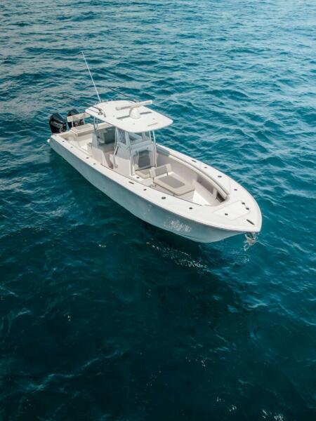 The Front Runner 33 CC delivers the same legendary ride, sleek styling, and serious capability as her larger siblings—but in a more compact, trailerable package. Measuring just over 33 feet, she blends offshore performance with everyday practicality, making her the ultimate dual-purpose vessel for fishing and cruising alike.