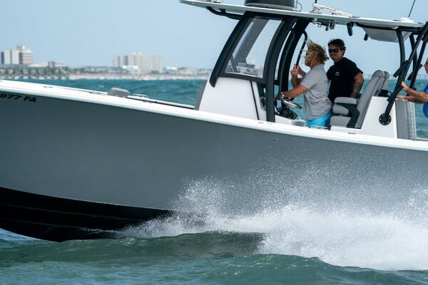 Don’t let the size fool you. With a sharp bow flare, clean shear line, and a performance-driven hull, the 33 CC offers the bold look and feel of a much larger center console. She's designed to chase fish offshore and turn heads at the dock—all while keeping you comfortable and in control.