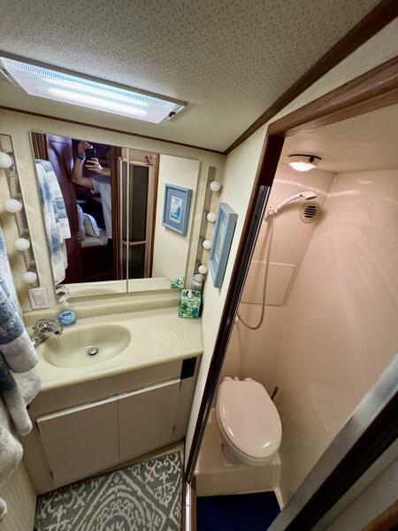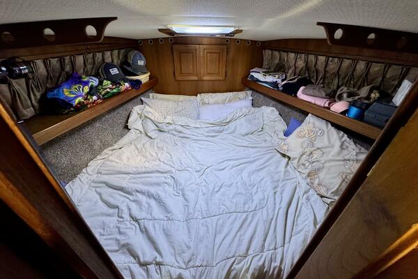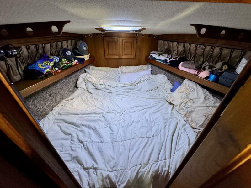 Master: V-berth w/ filler cushion, Samsung flat-screen TV
